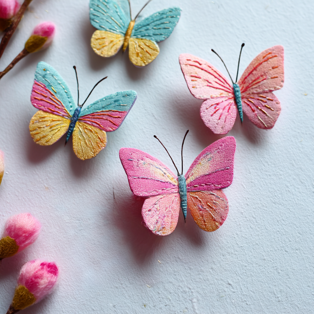 Fabric butterflies bring texture and softness into spring decor. Use cotton, linen, or scrap fabric to create butterfly shapes that can be lightly stuffed or left flat.