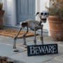 The backdrop of the display is equally captivating, with warm lights glowing from a nearby window, enhancing the overall spooky vibe. This setup not only attracts attention but also sparks the imagination of passersby, making it a perfect addition to your Halloween decorations.