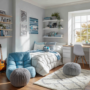When it comes to teen bedroom furniture ideas, multi-functional ottomans or benches are a total win. These pieces are not just for sitting; they can transform your space in so many ways. Take a look at the image above. The soft, tufted ottoman in a light gray color adds a cozy touch to the room while serving multiple purposes.