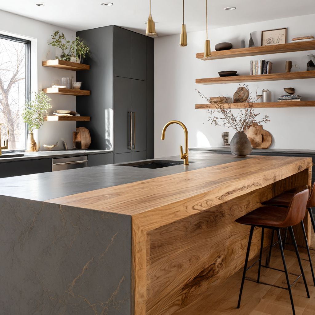 Contrast can elevate plywood from simple to striking. Pairing natural plywood countertops with matte black cabinetry creates a bold, modern look. The warmth of the wood balances the depth of dark finishes, resulting in a kitchen that feels grounded yet contemporary.