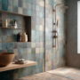 The varying tile patterns add depth and interest, making the space feel dynamic yet cohesive. The glossy finishes reflect light beautifully, enhancing the overall brightness of the room. Whether you’re taking a quick shower or enjoying a long soak in the tub, these coastal hues create a soothing backdrop that invites you to linger.