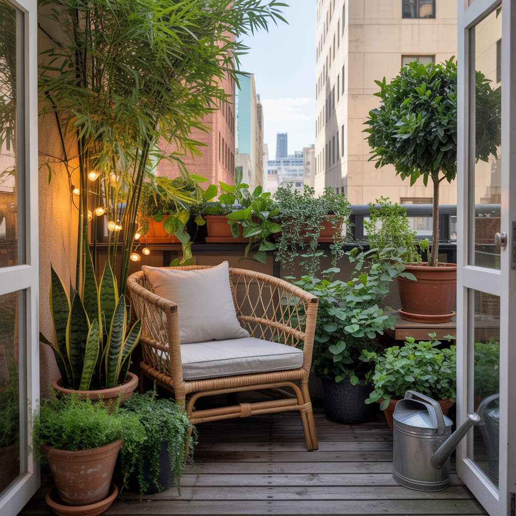 Use vertical space with wall-mounted planters or a ladder shelf. Hang plants from your ceiling or railings. Create levels with plant stands of different heights. Your balcony will feel like a secret garden in the middle of the city.