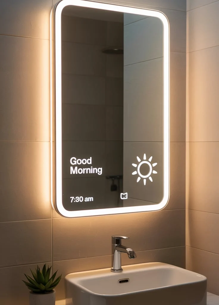 Smart mirrors are a fantastic addition to any bathroom, combining functionality with modern technology. The image above showcases a sleek smart mirror that not only reflects your image but also displays the time and weather, making it a practical choice for busy mornings.