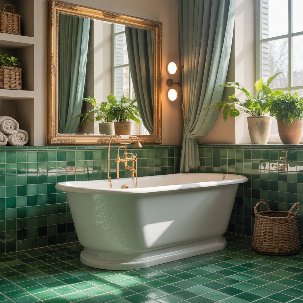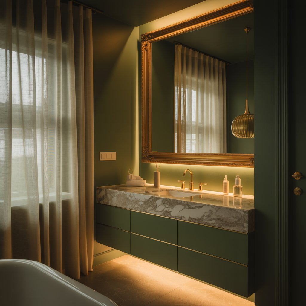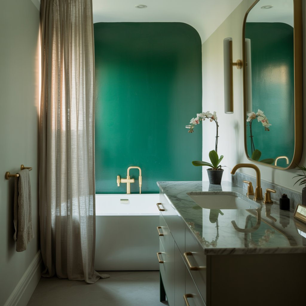 The most beautiful bathrooms tell a story. Let yours whisper tales of tranquil mornings and glamorous evenings, all wrapped in the timeless elegance of green and gold.