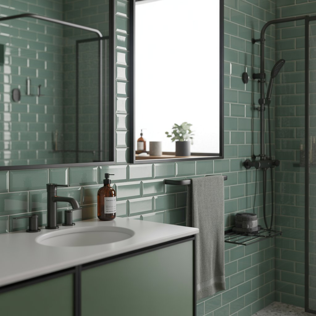 Creating visual drama in your green tiles bathroom starts with the perfect fixture pairing. Black fixtures against green tiles create a striking contrast that feels both modern and timeless.