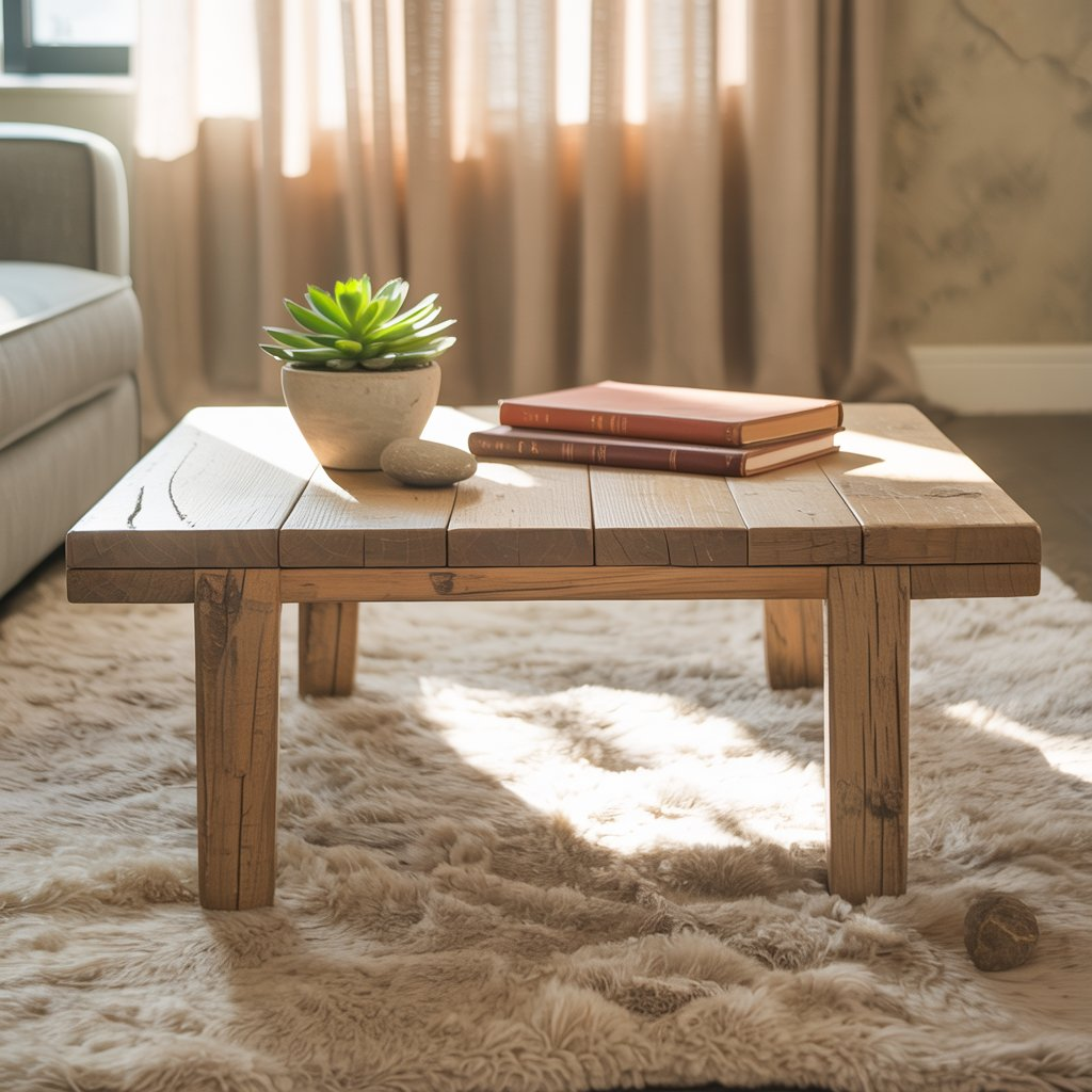 Style your table thoughtfully with a few carefully chosen items. A small succulent in a rustic pot, a few coffee table books, and perhaps a simple wooden bowl create visual interest without clutter.