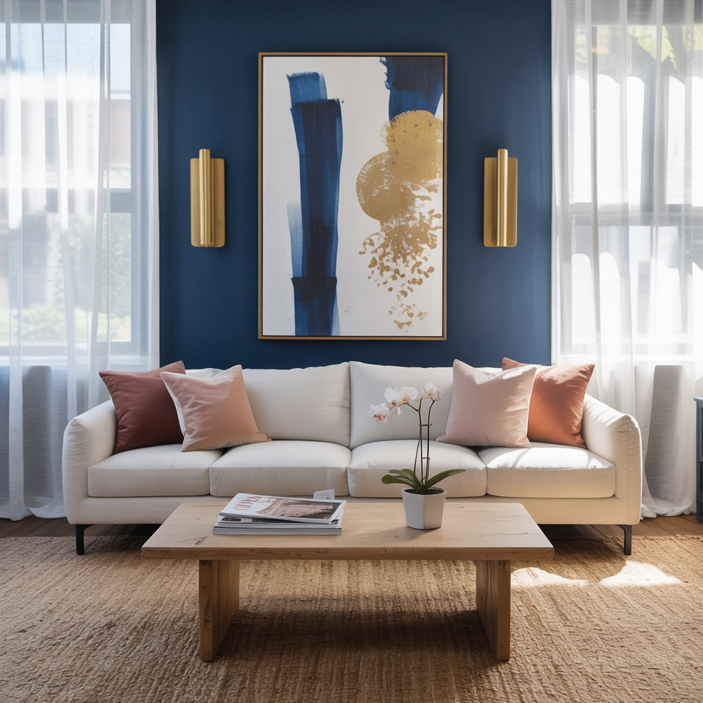 Consider using navy as an accent wall rather than painting the entire room. This approach gives you the dramatic impact of the color while maintaining the sense of openness that small spaces require.