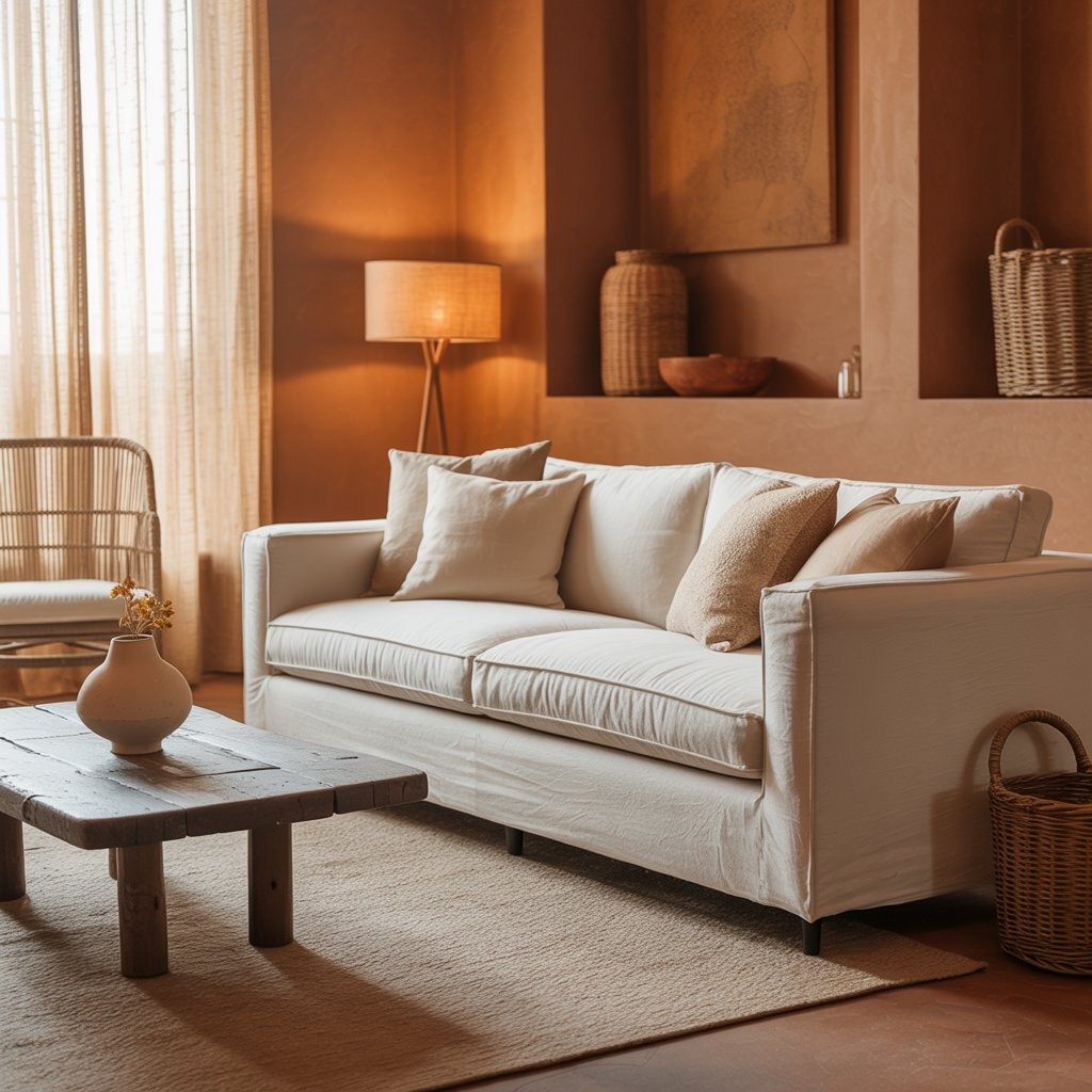 Balance terracotta with lighter accents and plenty of texture to prevent the space from feeling too heavy. Cream, white, and soft beige accessories help maintain the right balance of warmth and openness.