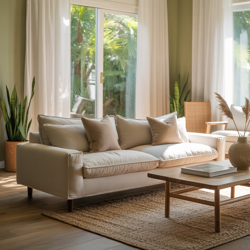 This muted, sophisticated green works particularly well in rooms with good natural light. It creates a fresh, airy feeling while maintaining the warmth and comfort that living rooms require for relaxation and entertaining.