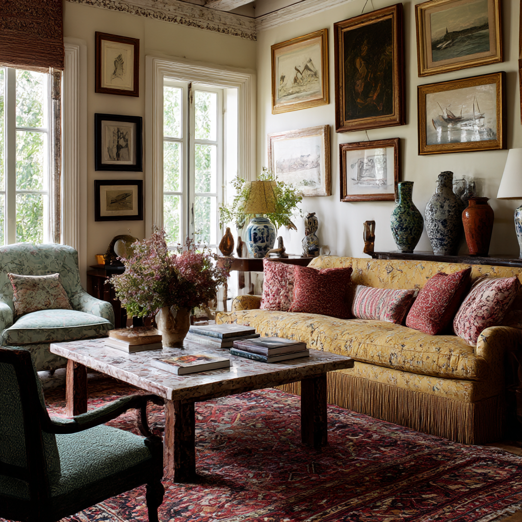 Repeating a particular hue across textiles, artwork, and accessories helps tie the room together. Even when furniture spans different eras, color continuity maintains visual balance.